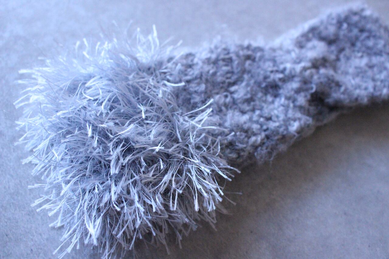 もしょもしょが耳にかかるように、センターを合わせて斜めにするとバランスよく身につけられます。これからの季節に、髪型を崩さずに防寒にもおすすめです。
