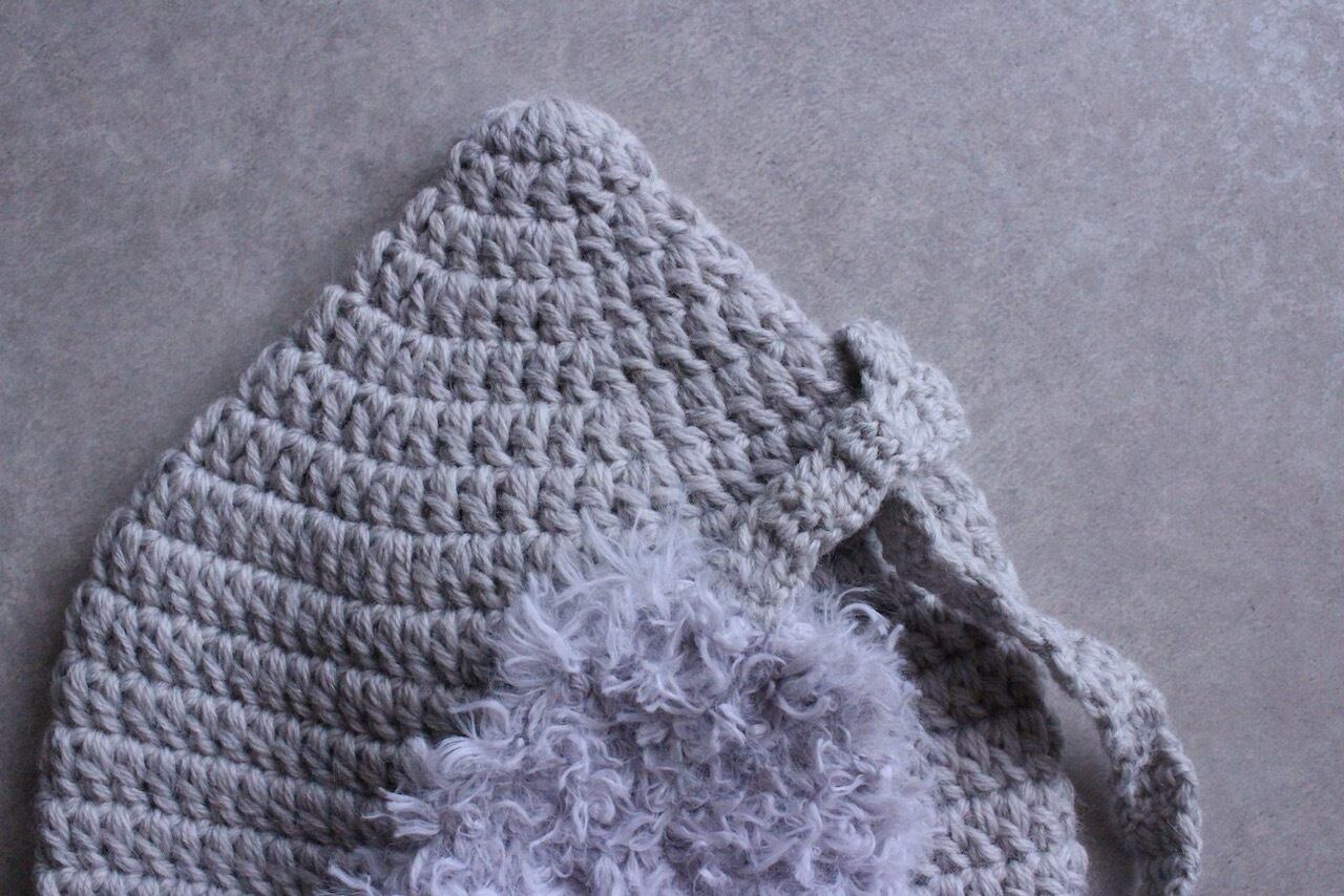 定番の尖りの形にモシャモシャの耳当てのついた帽子です。