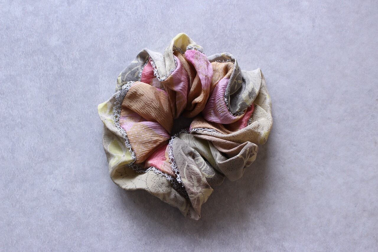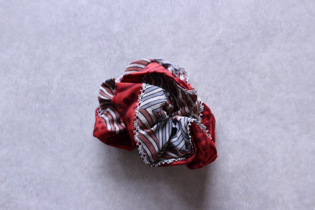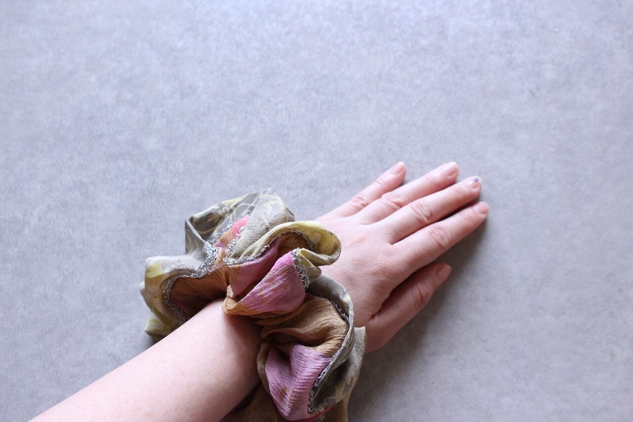 タイシルク生地を組み合わせ、スカーフのように軽いシュシュです。