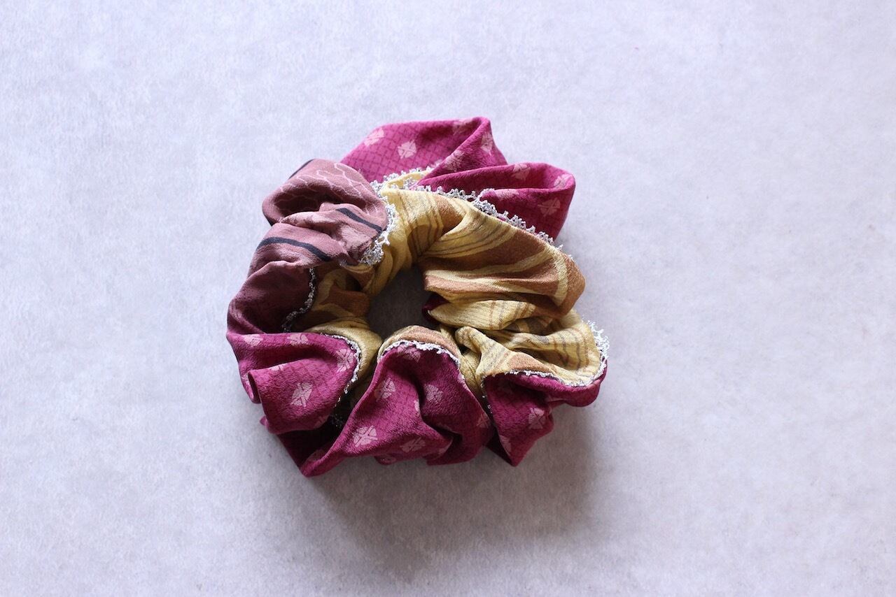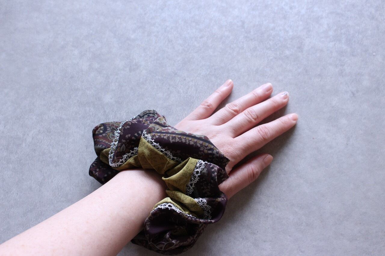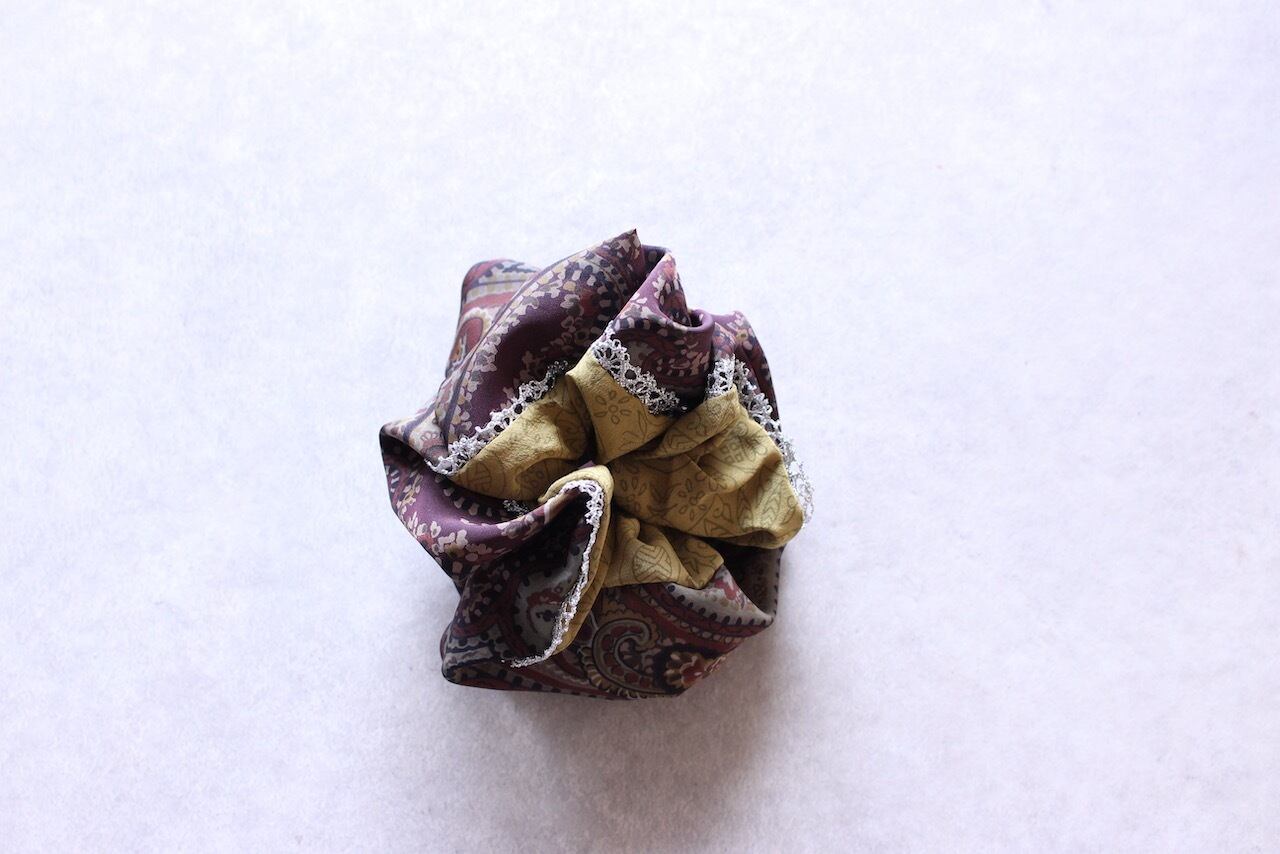 タイシルク生地を組み合わせ、スカーフのように軽いシュシュです。