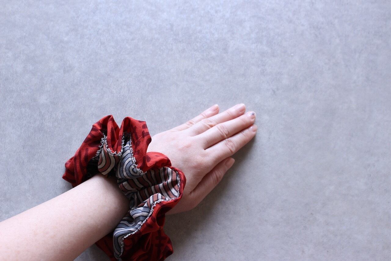 タイシルクは柔らかく、ヘアアレンジがしやすく、ボリュームがあるので腕につけてアクセサリー感覚でお使いいただけます。